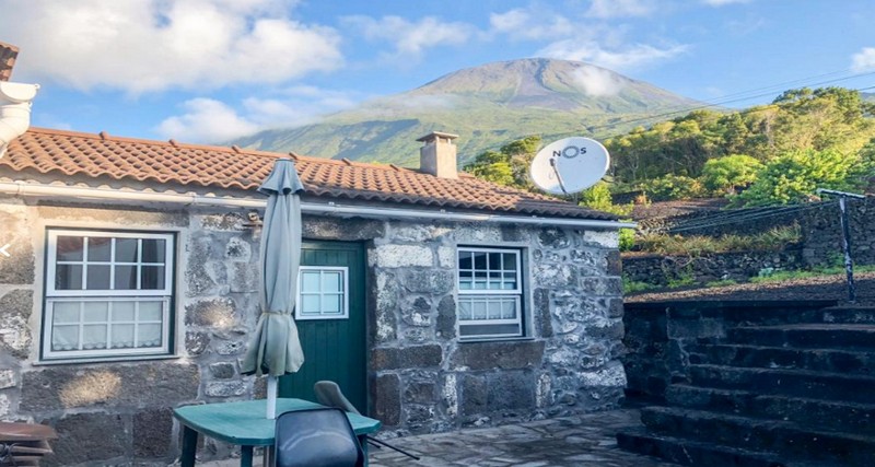 Descrição Moradia construída em pedra de basalto, em São Caetano, na costa Sul da Ilha do Pico, com vista para a montanha do Pico, para as vinhas em currais e para o mar. Constituída por três quartos, sala, cozinha, casa de banho e balcão.